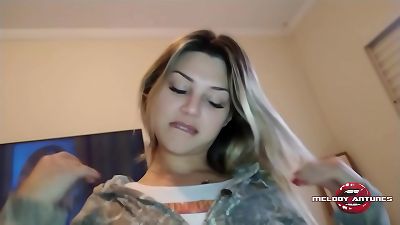 huge-chested BBW`s striptease on the balcony