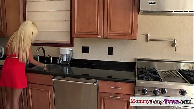 thick boobs naughty blond maid gets seduced in the kitchen and smashed in the ass.