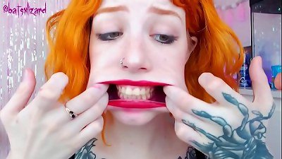 Ginger slut giant penis facehole demolish uglyface ASMR blow-job crimson lip liner